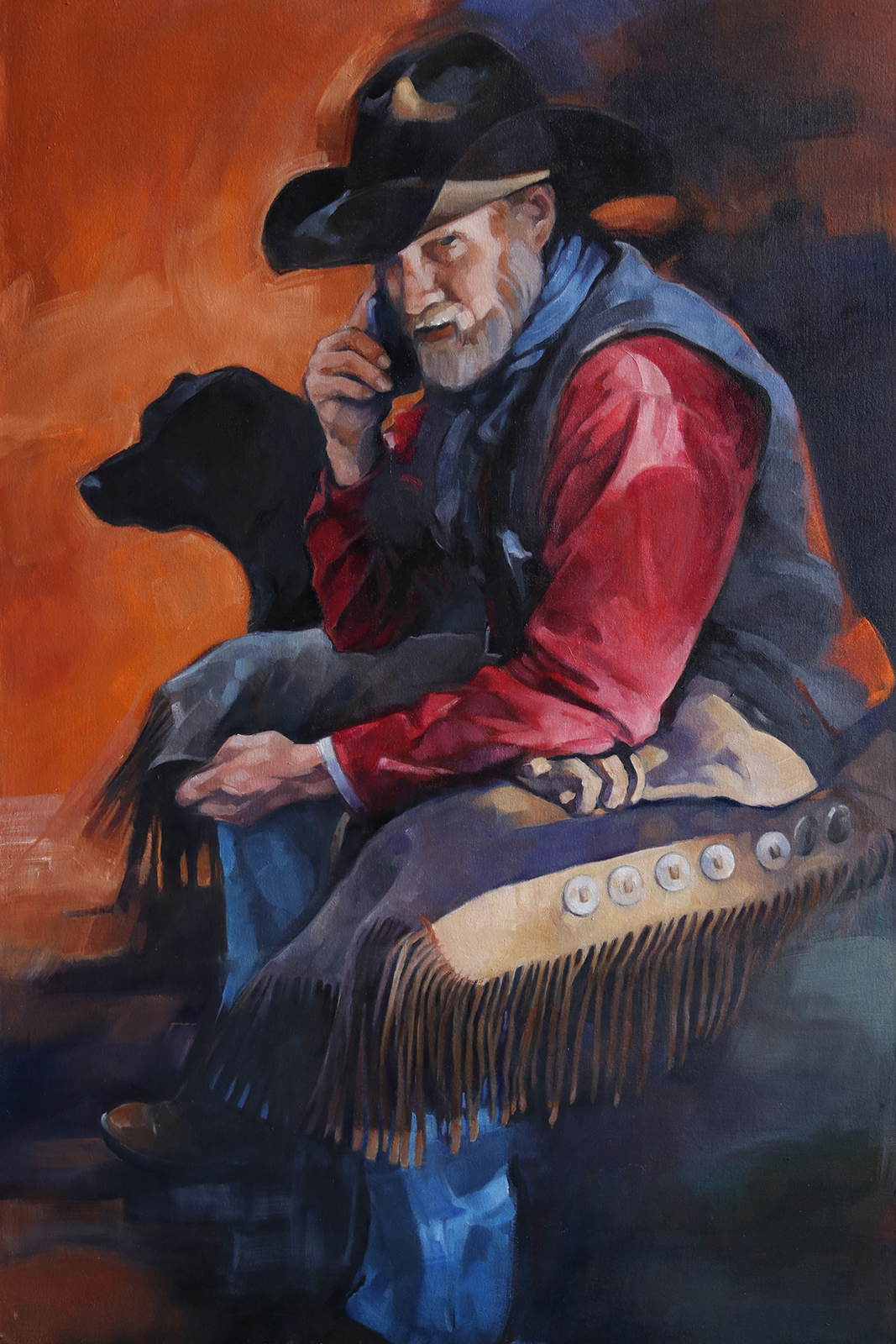 I was strolling around the National Livestock Show in Denver snapping some shots. I walked through the cattle pens and saw this cowhand sitting on a bale of hay with his lab talking on his cell phone. The contrast between traditional western garb and modern technology struck me as a statement on the adaptability of hard working people in western culture.